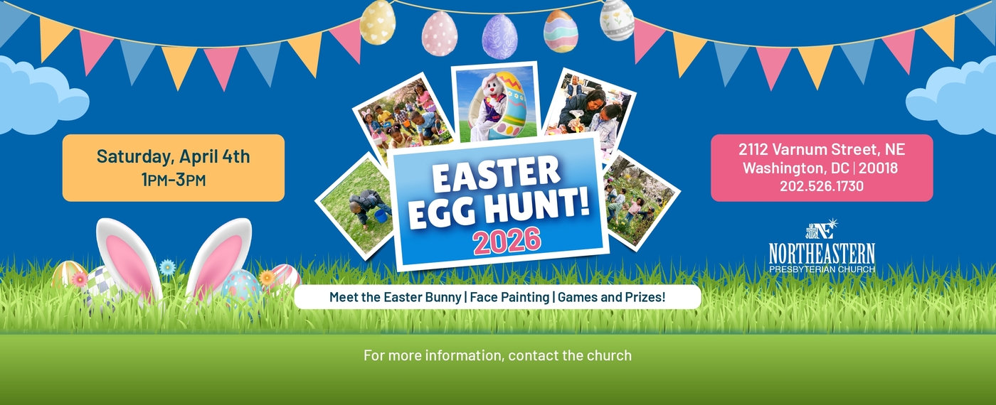 Upcoming Events March 29 Adult Sunday School Class 9:00 AM - 10:00 AM March 29 Youth Sunday 10:00 AM - 11:30 AM March 31 Tuesday Bible Study 11:00 AM - 12:00 PM April 4 NEPC Easter Egg Hunt 1:00 PM - 3:00 PM April 5 Adult Sunday School Class 9:00 AM - 10:00 AM April 5 Literary Club Meeting 1:30 PM - 2:30 PM April 7 Tuesday Bible Study 11:00 AM - 12:00 PM April 12 Adult Sunday School Class 9:00 AM - 10:00 AM April 14 Tuesday Bible Study 11:00 AM - 12:00 PM April 19 Adult Sunday School Class 9:00 AM - 10:00 AM April 21 Tuesday Bible Study 11:00 AM - 12:00 PM April 23 HARRIET TUBMAN TOUR (PLUS BIRDING!) 2:00 PM - 6:00 PM View All