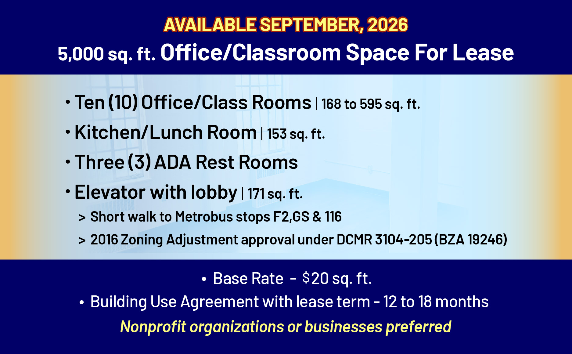 OFFICE/CLASSROOM SPACE FOR LEASE